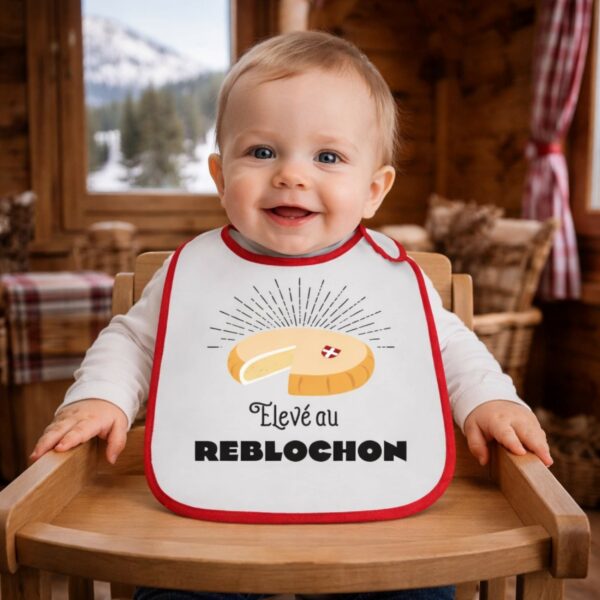 Pensé pour allier style et praticité, le bavoir bébé « élevé au reblochon » se distingue par son joli liseré rouge qui encadre élégamment le bavoir et souligne son design. Ce contraste apporte une finition soignée et moderne, tout en rappelant subtilement l’univers gourmand et chaleureux de la montagne. Son visuel attire immédiatement l’attention et fait fondre les amateurs de fromage.