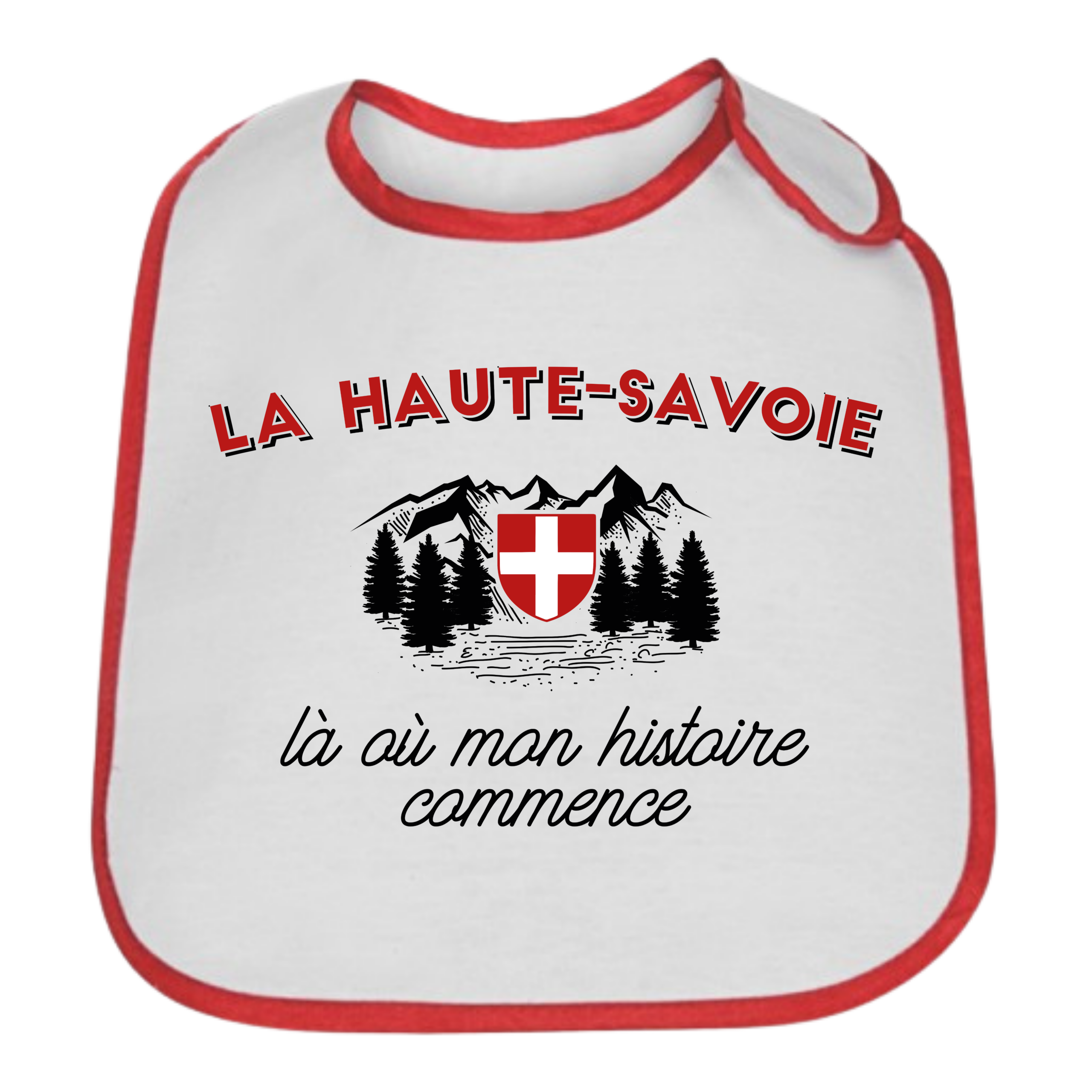 Avec son design épuré et son joli liseré rouge qui encadre délicatement le bavoir, le Bavoir bébé « La Haute-Savoie là où mon histoire commence » allie élégance et caractère. Le contraste du liseré apporte une finition soignée tout en mettant en valeur l’imprimé central. C’est un accessoire à la fois pratique et chargé d’émotion, parfait pour immortaliser les premiers repas et les premières photos souvenirs.
