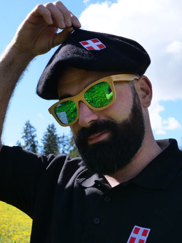 La croix de Savoie, emblème historique, trône fièrement sur ce béret pour rappeler l’indépendance d’esprit, la richesse des montagnes, et la singularité de ce territoire entre France et Italie.