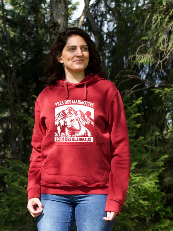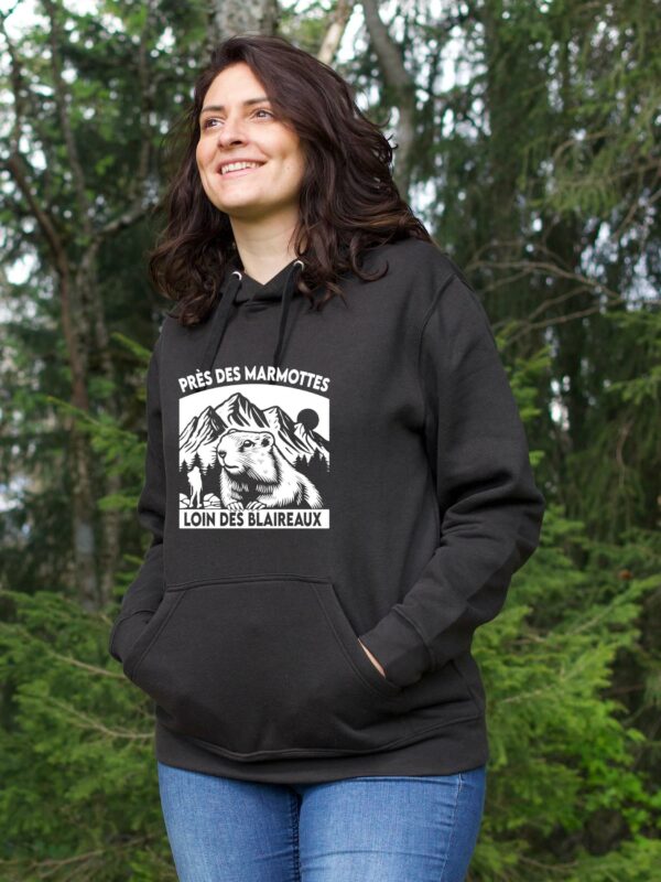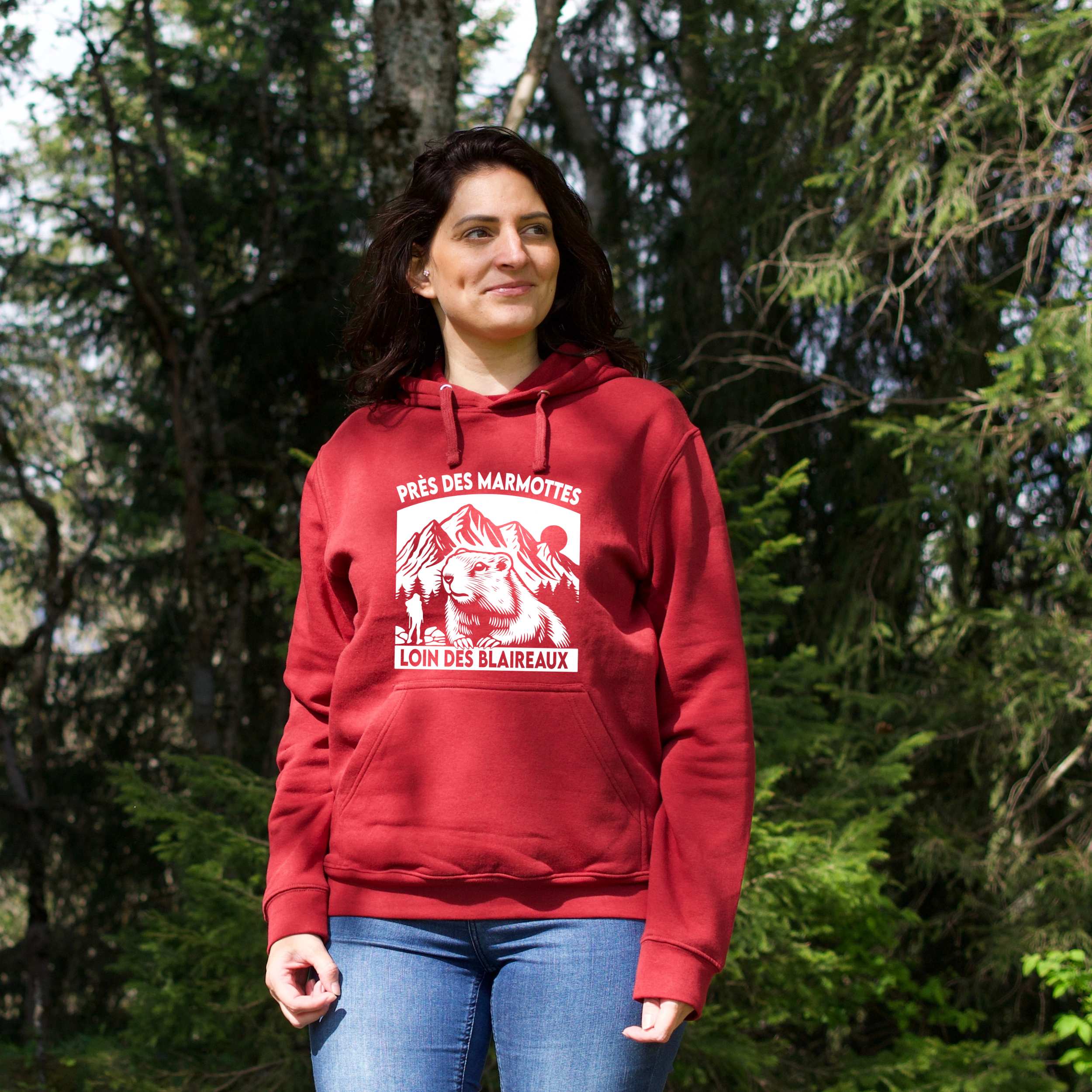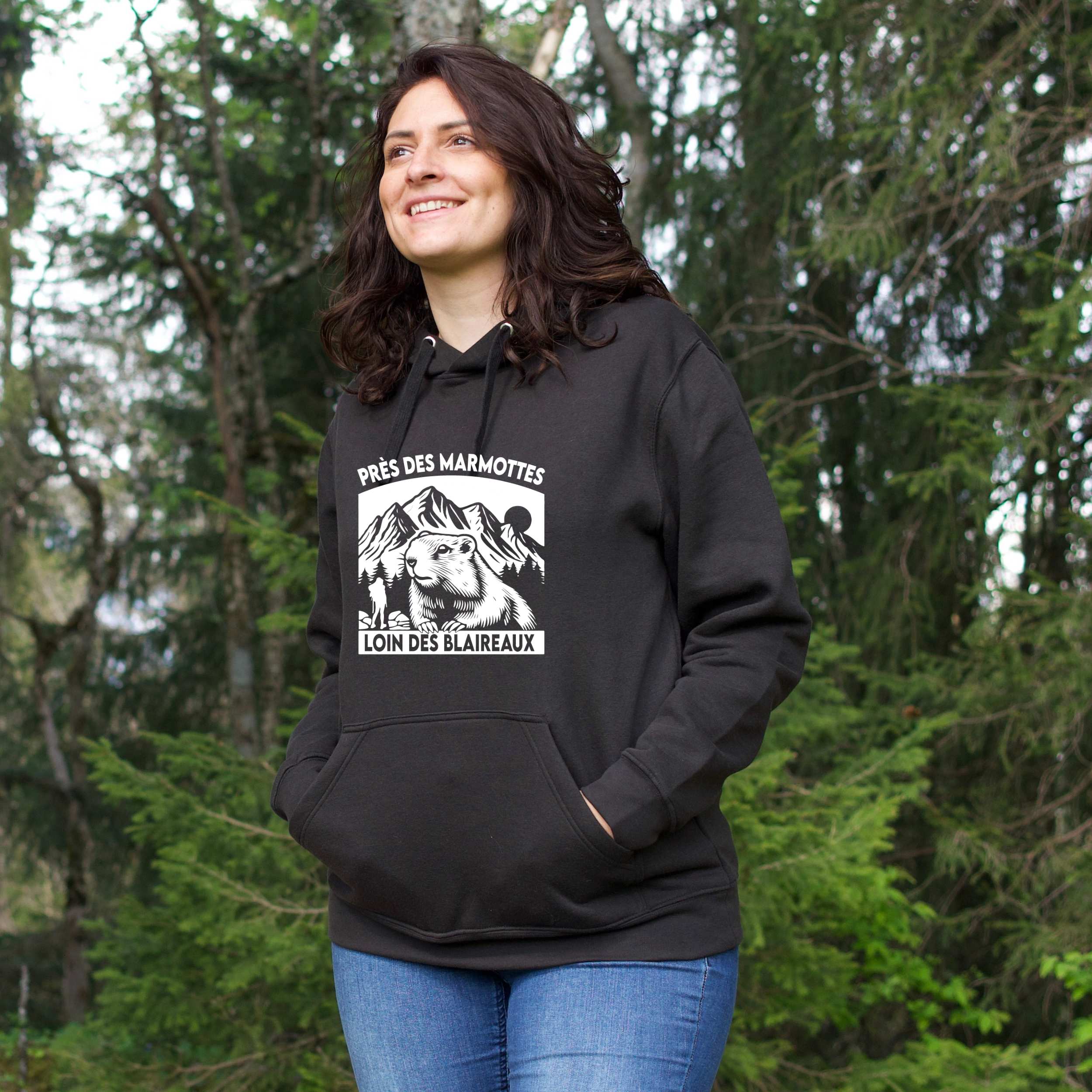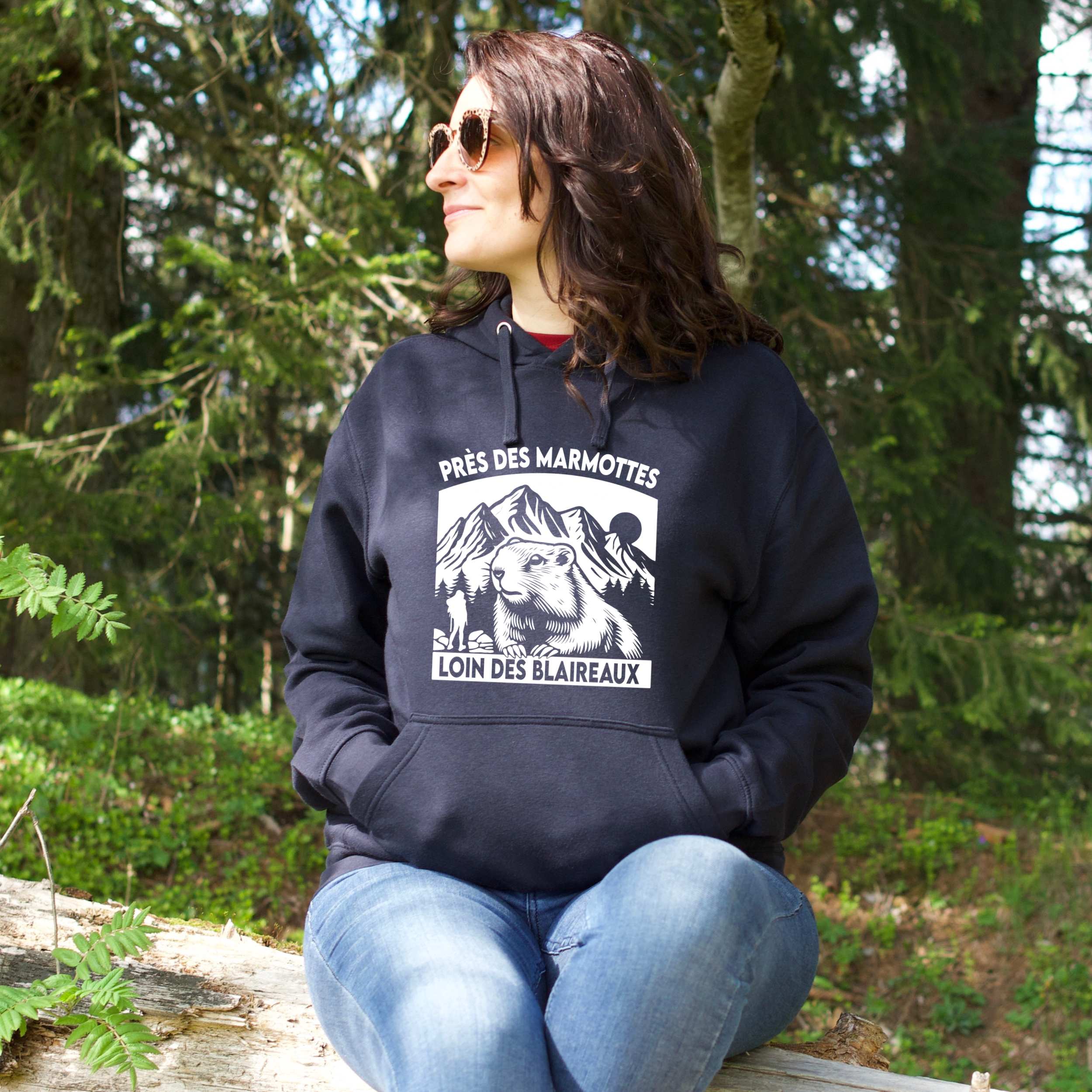 Sweat à capuche Femme – Près des marmottes, loin des blaireaux (Nouveau modèle)