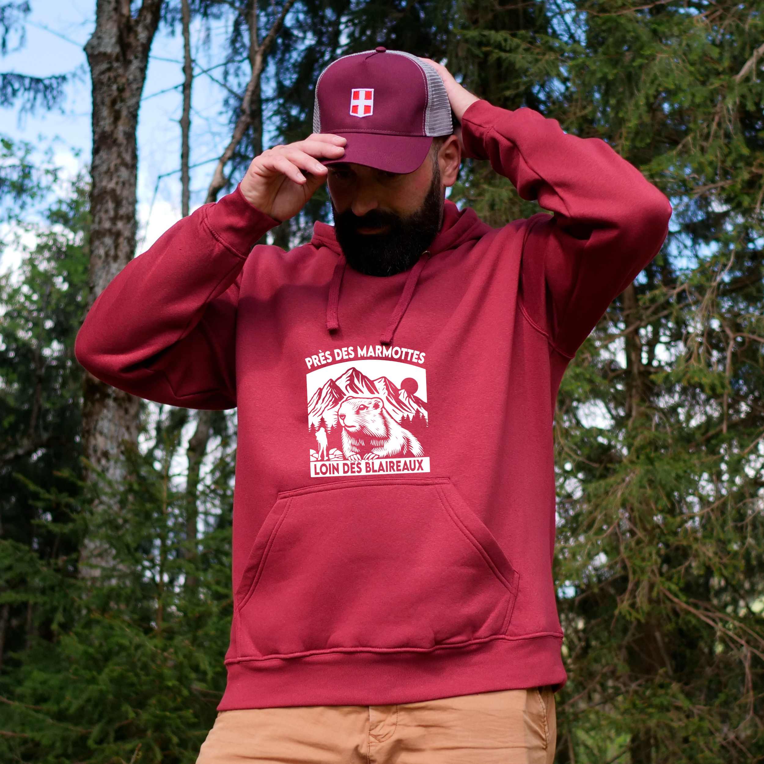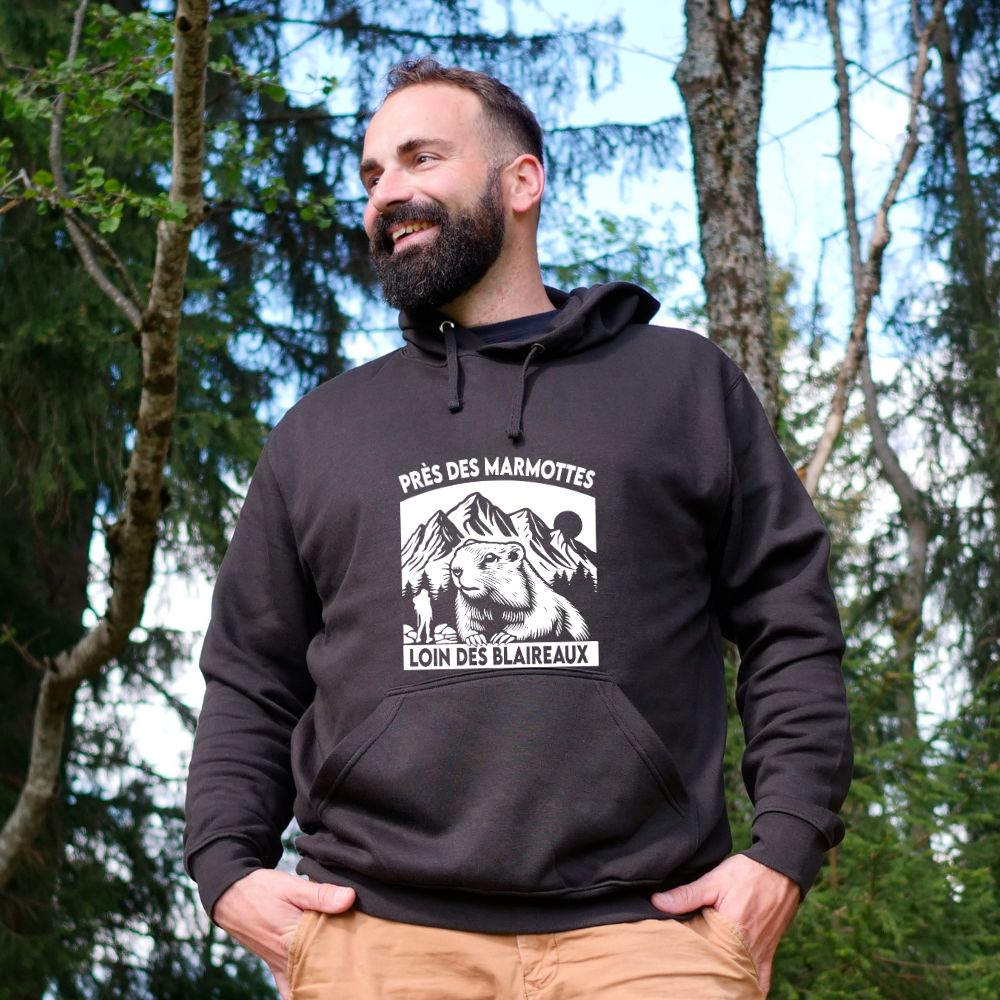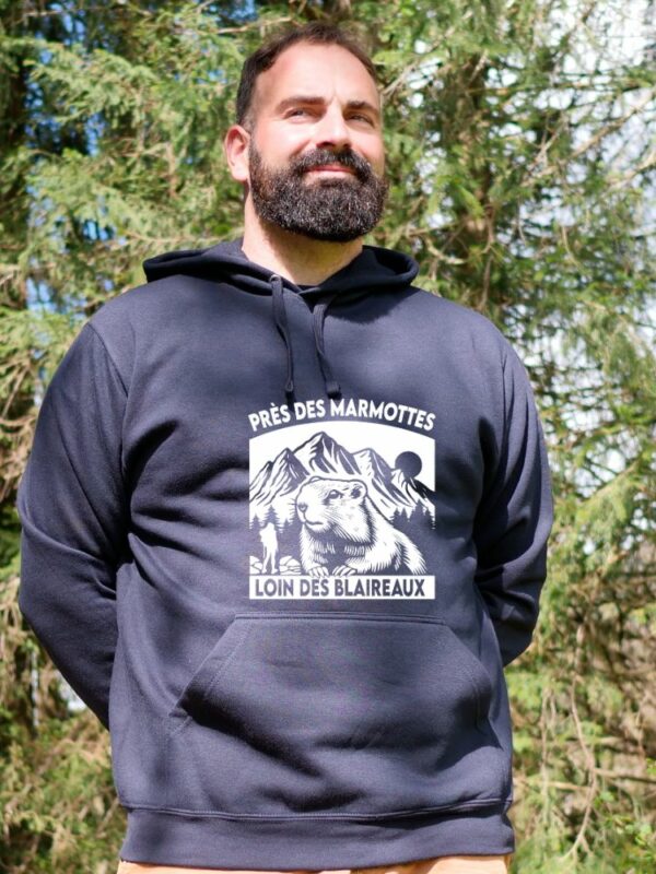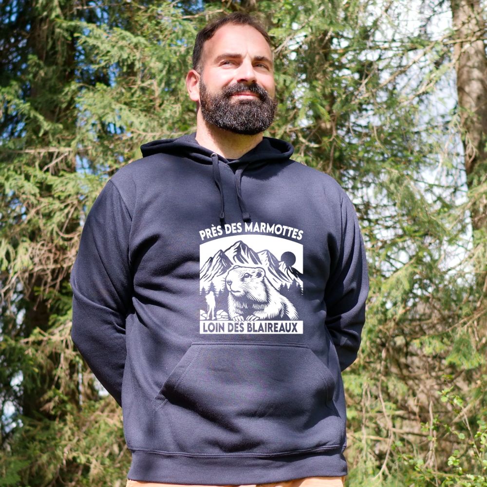 Sweat à capuche Homme – Près des marmottes, loin des blaireaux (Nouveau modèle)