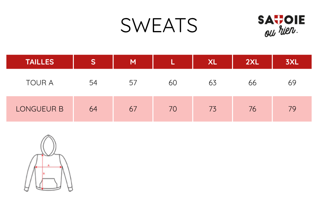 Un sweat à capuche aux couleurs de la Savoie, pensé & fabriqué pour chaque occasion : s’habiller au quotidien, passer un message humoristique ou simplement pour faire du sport en affichant d’où tu viens !