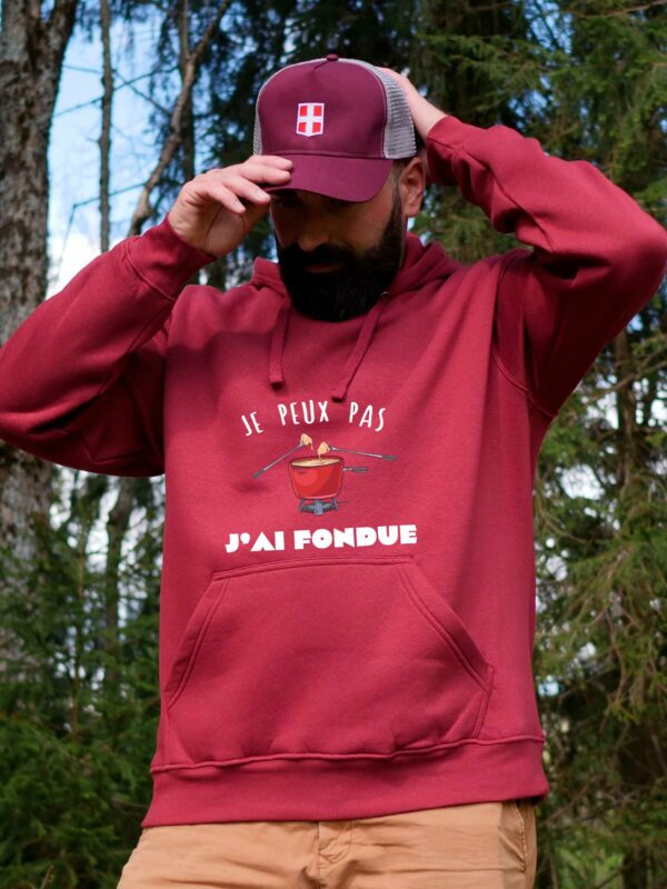 Sweat – Je peux pas j’ai fondue ca rend moins con est un incontournable de nos créations. Il fait partir des slogans les plus appréciés de notre clientèle.